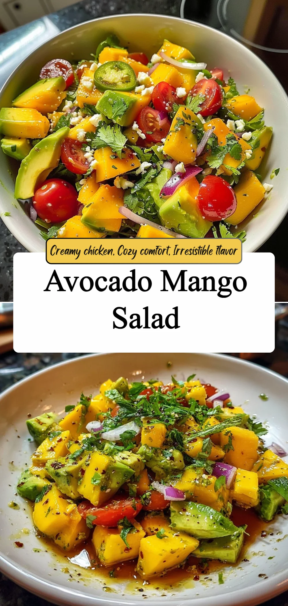If you give this recipe a try, let the bright, juicy flavors of the Avocado Mango Salad guide you. Pin it, share it, and make small adjustments to match your tastes—this salad is forgiving and full of sunshine. Enjoy the process, savor each bite, and bring this fresh dish to your table again and again.