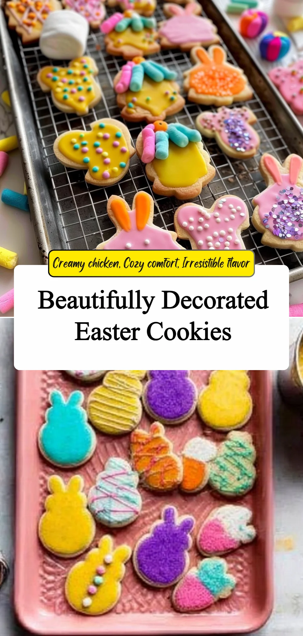 We are a small circle who love simple comforts and the gentle rhythm of everyday cooking, turning familiar ingredients into warm memories in real kitchens with honest timing and approachable methods. The kitchen hum becomes a backdrop for frosting-smeared laughter as Easter Cookies appear on the counter, bright and cheerful, ready to be shared with neighbors or set out for a cozy holiday breakfast. These Easter Cookies are designed for busy days and creative afternoons, tested so you can trust the results the first time and every time after. If you want a light, fresh side to pair with these cookies, try a bright spring salad with goat cheese for a perfectly balanced table.