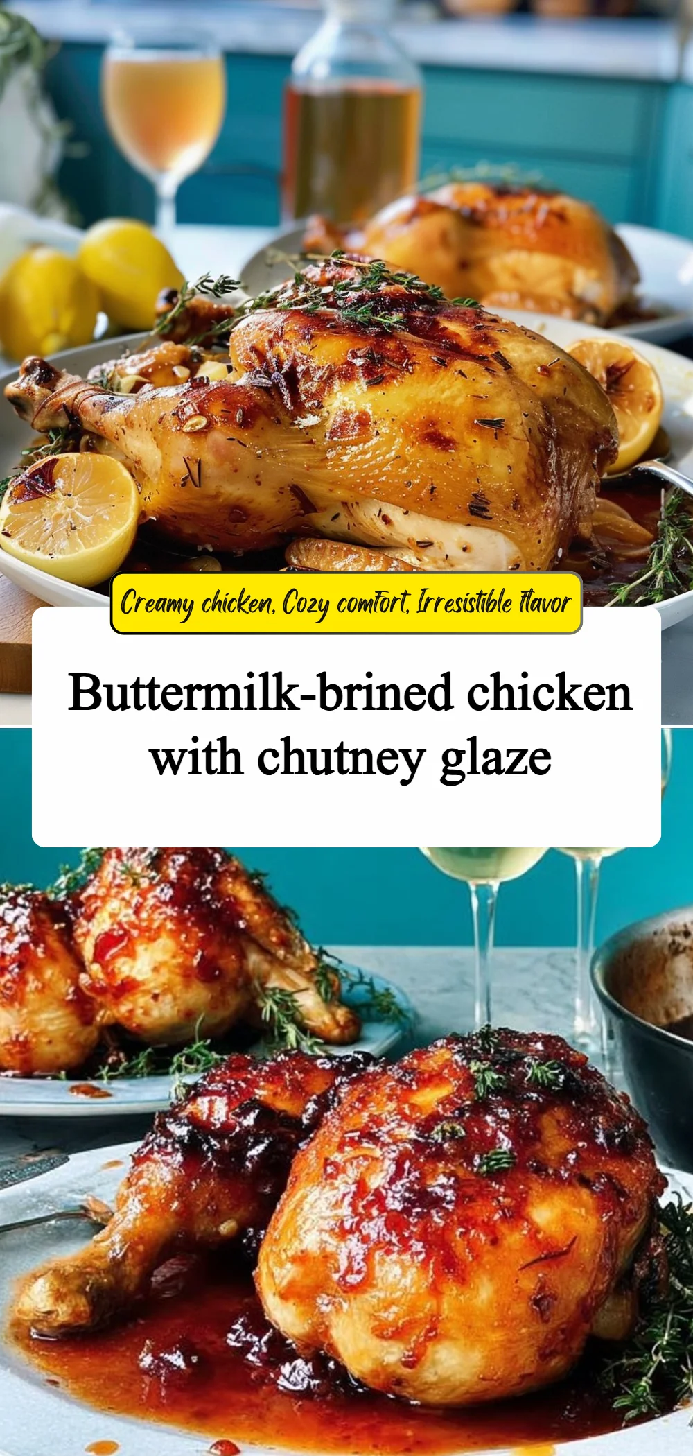Make this buttermilk-brined chicken with chutney glaze on a night when you want something reliable and a little bit special. Share photos, pin the recipe for later, and invite friends to taste a roast that is both everyday and celebratory.