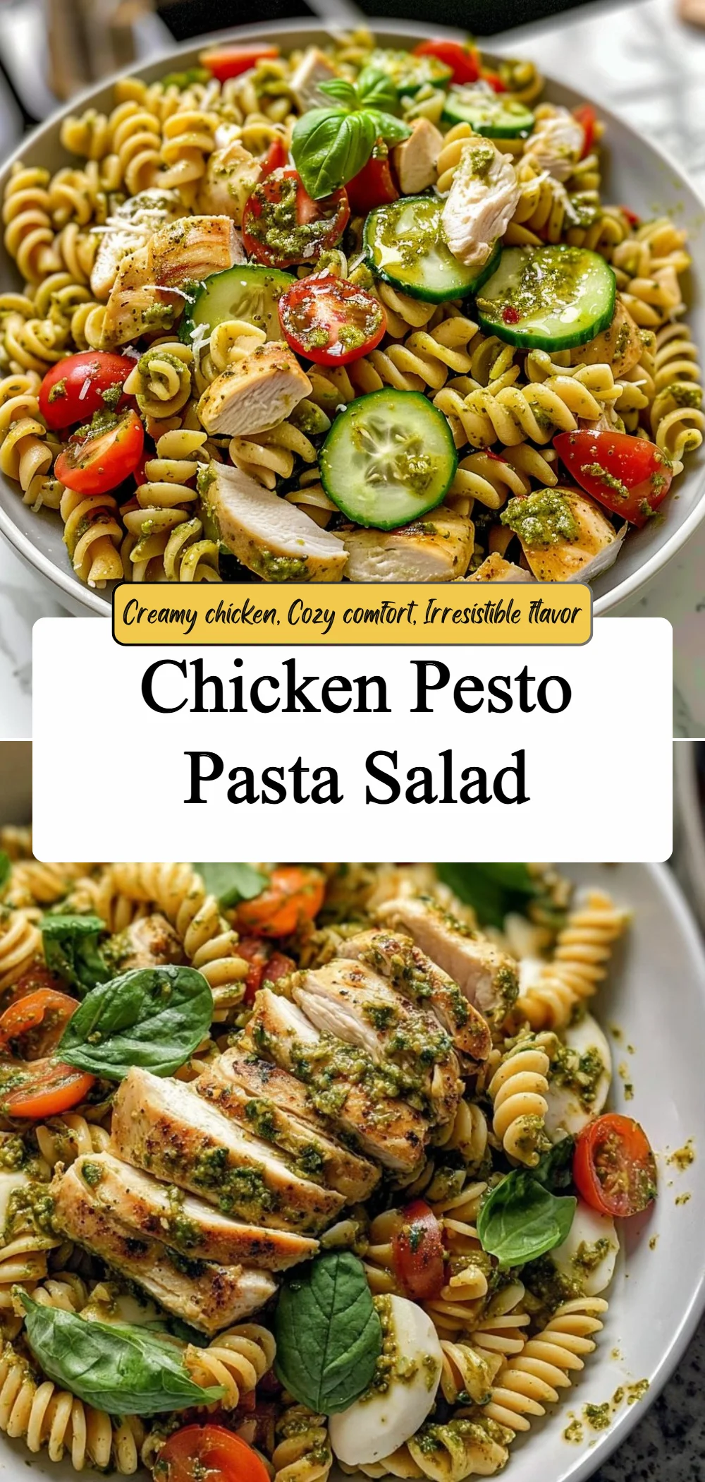 Give this Chicken Pesto Pasta Salad a whirl and enjoy how easily it comes together; then share the results, pin the recipe, and pass the idea along to friends who appreciate quick, flavorful meals. Invite someone over, plate it with a fresh salad, and let the pesto and tender chicken do the talking.