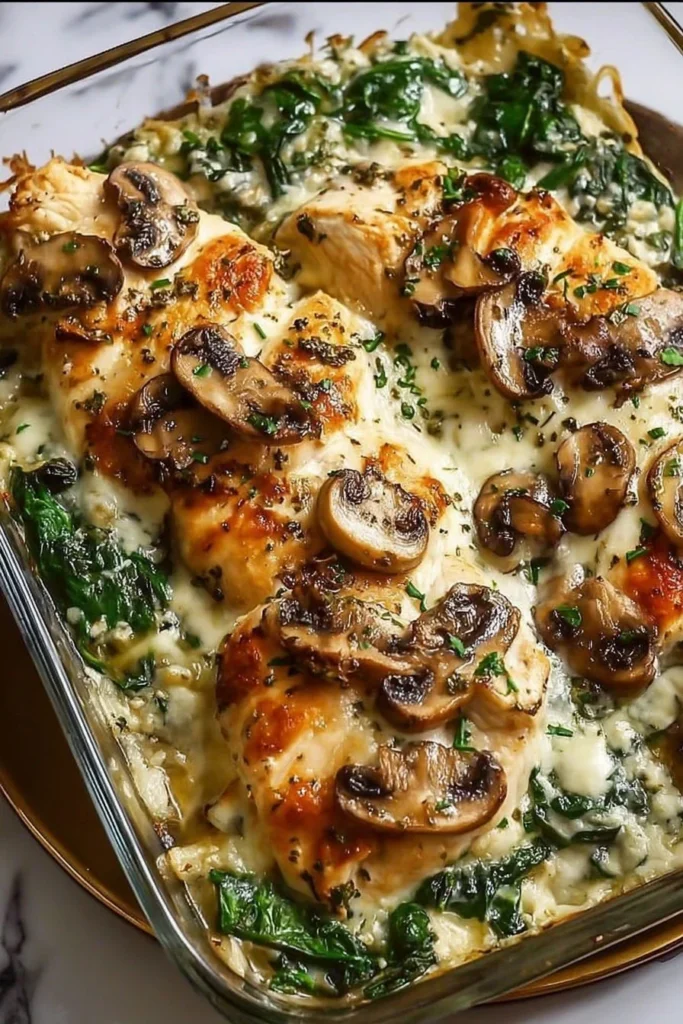 Amazing Cozy Chicken Spinach and Mushroom Low Carb Oven Dish Recipe