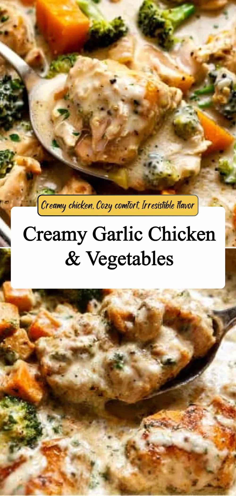 There is something quietly generous about a skillet full of rich sauce, tender chicken, and roasted vegetables. This recipe nods to the idea that food can be both practical and warm, offering familiar flavors that soothe after a long day. Sharing a dish like Creamy Garlic Chicken & Vegetables often sparks conversation and comfort, connecting whoever is at the table through simple, satisfying food. It is a reminder that tasty, dependable meals are sometimes the most meaningful.