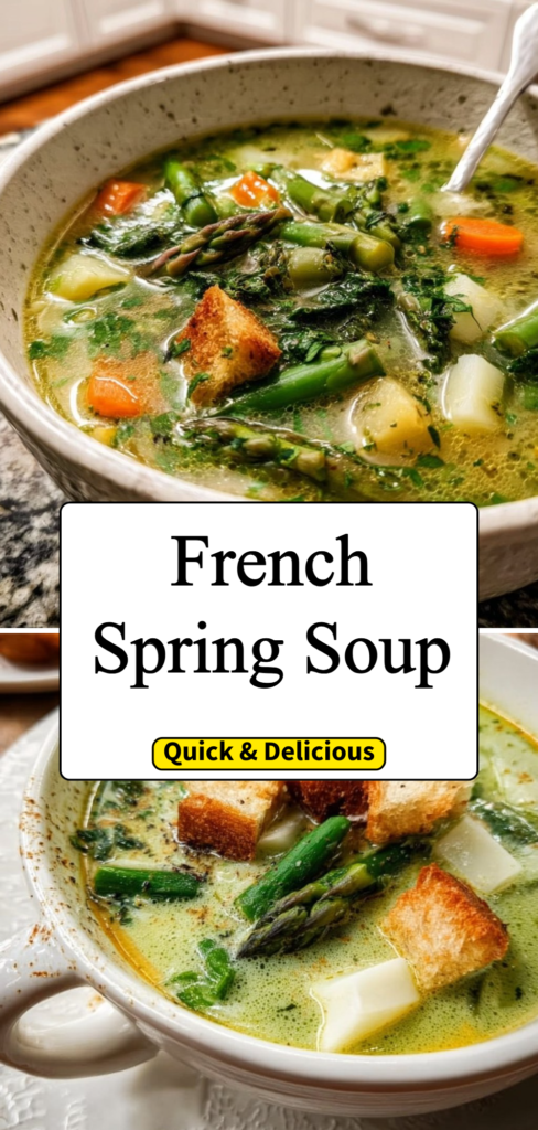 French Spring Soup is waiting for your pot and your favorite spoon; try it, adapt it, and make it part of your seasonal rotation. Pin this recipe to your boards, share it with friends, and invite others to enjoy a bowl that tastes like the first warm days of the year.