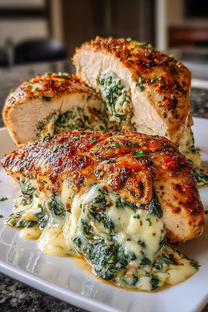 To save time, prepare the stuffed chicken in advance and store it in the refrigerator for up to a day. You can also freeze it before baking. Just wrap each stuffed breast tightly in plastic wrap and place it in an airtight container. When ready to cook, let it thaw overnight in the fridge, then bake as directed.
