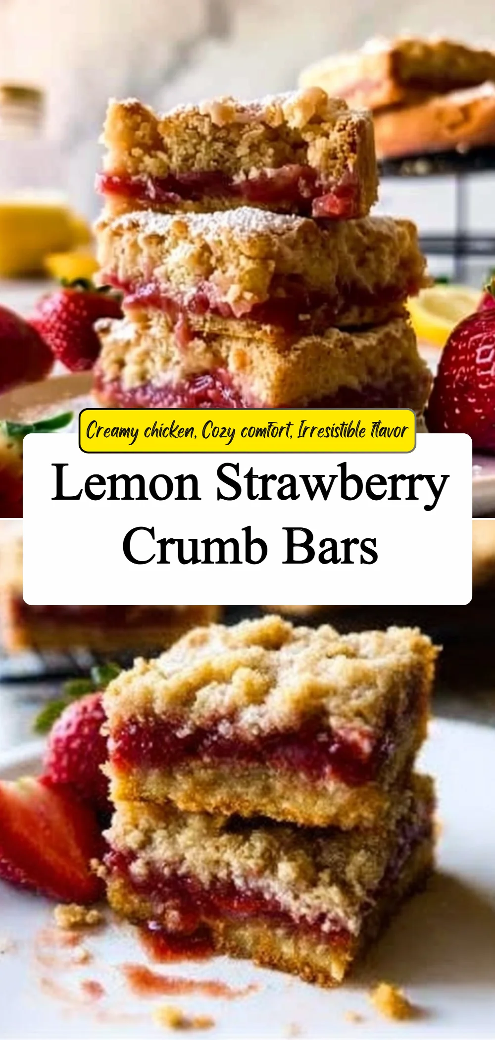 We are a small group of friends who love cozy chicken dinners and the rhythm of everyday cooking, and those same warm, uncomplicated feelings inspired these Lemon Strawberry Crumb Bars. These bars celebrate bright lemon notes and juicy strawberries folded into a buttery crumb that feels like a hug on a napkin, and the main keyword Lemon Strawberry Crumb Bars appears naturally in the story and recipe because that is what we love to make for casual gatherings. If you enjoy lively citrus in sweet treats, you might also appreciate a savory weeknight favorite like this lemon herb chicken and rice that leans into the same lemony brightness. The Lemon Strawberry Crumb Bars are meant to be easy, reliable, and perfect for sharing with neighbors or stacking on a picnic plate.