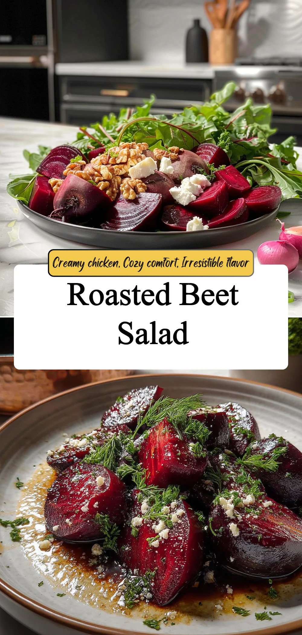 A warm, comforting salad featuring sweet roasted red beets, crunchy walnuts, and tangy goat cheese, perfect for cozy dinners and gatherings.