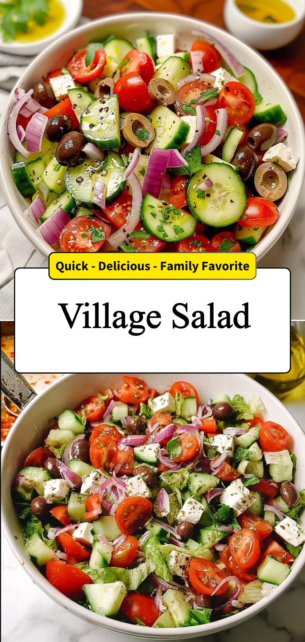 - Sides: Pair the Village Salad with warm pita bread, crusty country loaf, or a plate of grilled vegetables to make a fuller meal. It also complements simple roasted chicken or pan-seared fish beautifully.